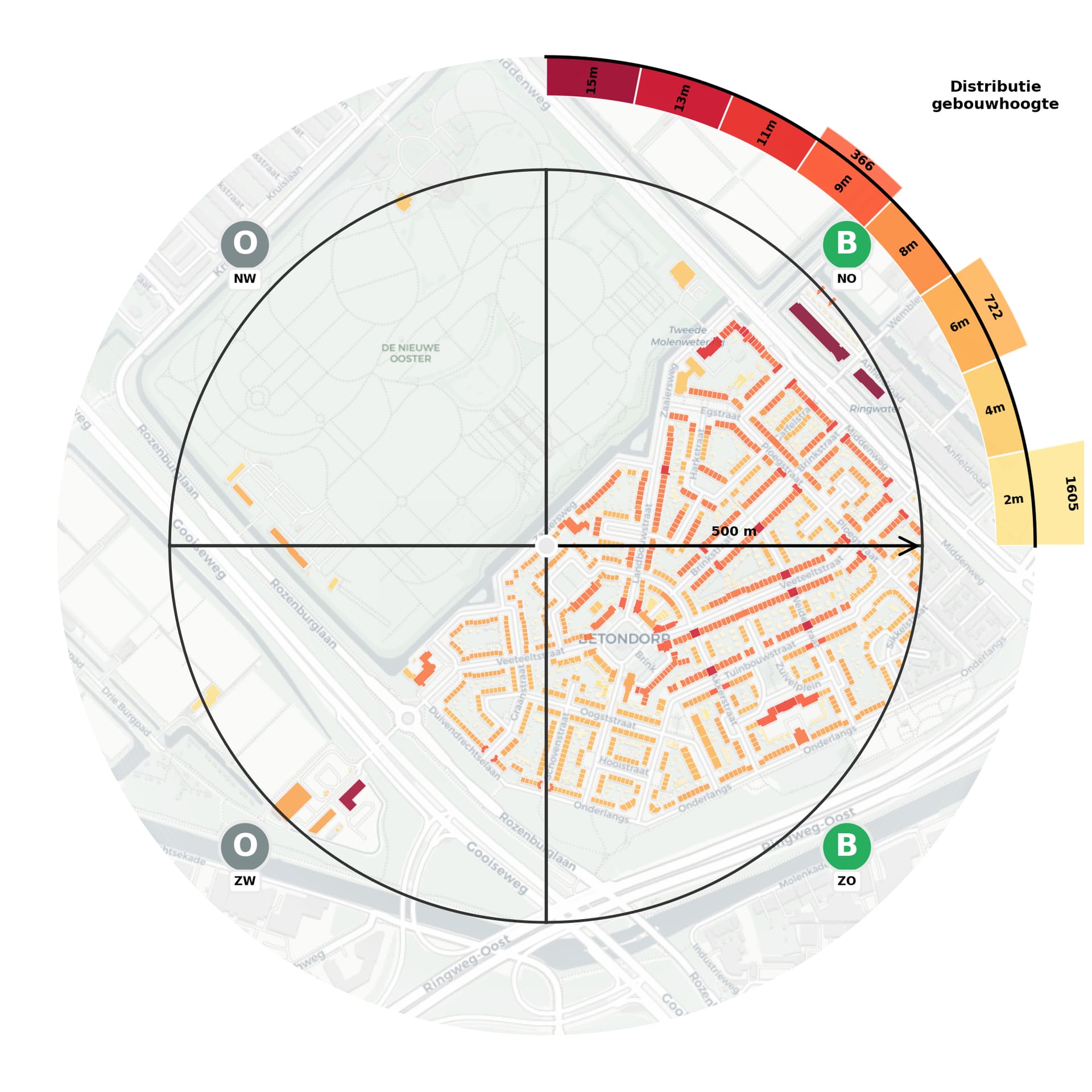 Wij werken als adviesbureau voor bouwconstructies aan het bepalen van windbelastingen op bouwwerken. Een belangrijke stap daarbij is vaststellen of een gebied “bebouwd” of “onbebouwd” is. Dit doen we op basis van het bebouwingspercentage binnen een bepaalde straal van het bouwwerk en de gemiddelde bouwhoogte van omliggende bebouwing.