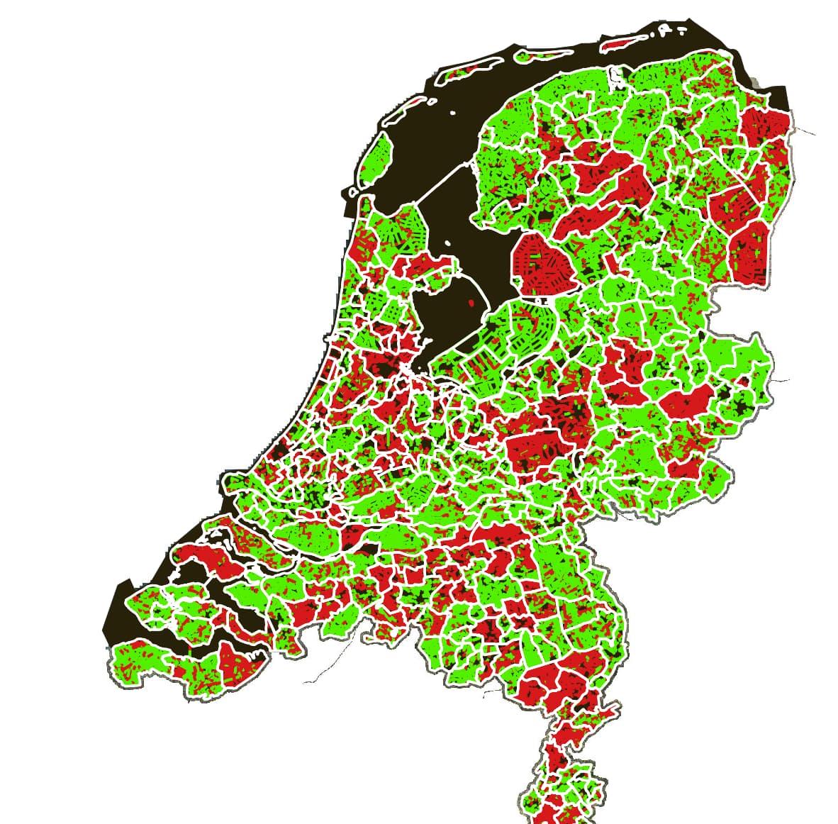 Alle wegvakken van meer dan 600 meter zouden in beginsel 2 labels moeten hebben. Op de kaart zie je ‘rode gemeentes’ waar dat niet het geval is, naast veel ‘groene gemeentes’.