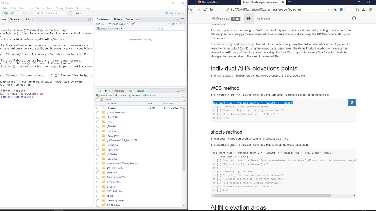 Jelle, ik begrijp dat er een manier is om een csv bestandje voorzien van X,Y coordinaen via Rstudio en rAHNextract te laten ‘vullen’ met Z waarden van het maailveld. De documentatie is erg vrij cryptisch en mager en ik kom er niet achter hoe je dit werkend krijgt. Kun jij daar iets over toelichten? Het is namelijk wel ontzettend intressant voor legio toepassingen !